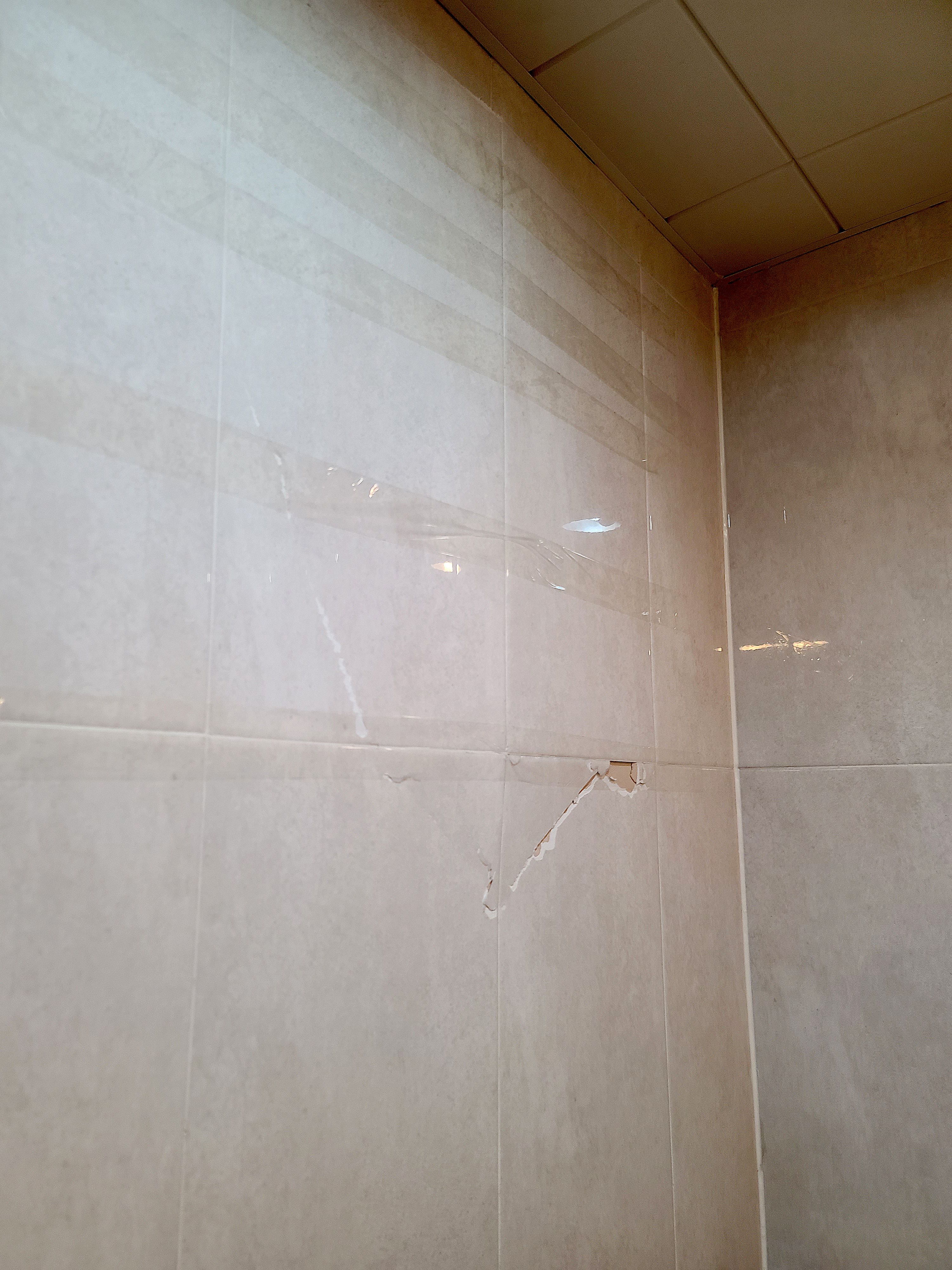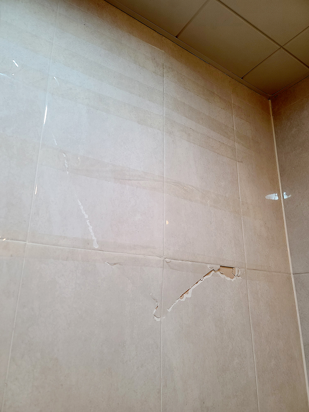 타일이 깨지거나 부서지는 현상이 생긴 것이다.