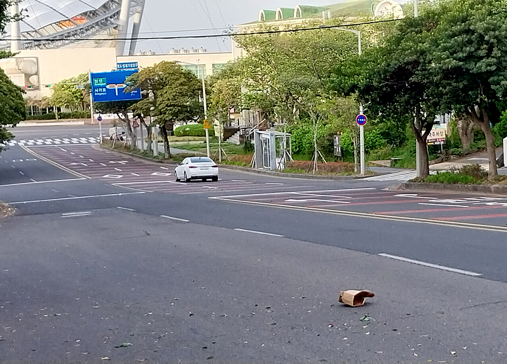 저 멀리 4차선 도로 위에