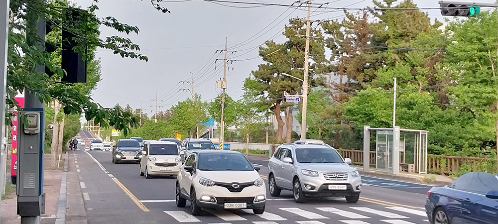 중산간도로에서 달리는 자동차들은