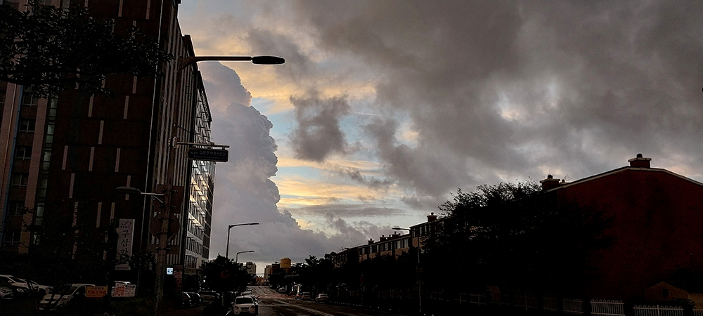제주살이 236: 서귀포 아침 하늘이 그림이네요.