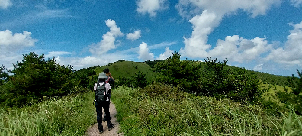 끝으로 제주 오름을 탐험하는 사람들,