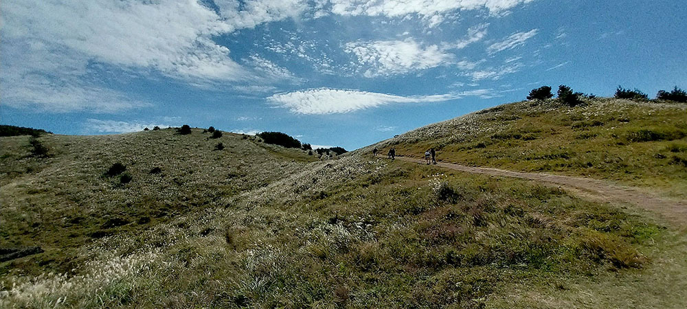 평평한 오름 아끈다랑쉬엔 억새가 아직 덜 피었는지 초록초록하다.