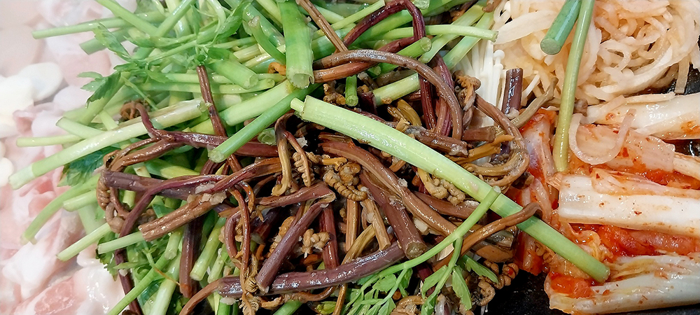나물 한 접시(고사리+미나리+마늘쫑)와