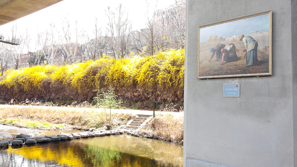 걷고 사랑하며 #9-1: 홍제천(HongJecheon) 노란색 울타리를 훌쩍 뛰어넘어 온 새들은 음표가 되어