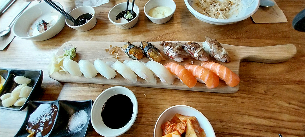 스시노찌 스시, 데리야끼치킨, 김치우동, 회덮밥, 돈가스를